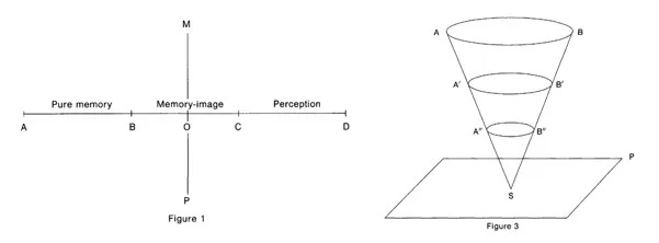 Risk is actualized only in realtime, in the individual moment, on the invisible plane of the present P, which intersects the tip of the inverted prism of possibility in time, point S, in Bergson’s Figure 3.